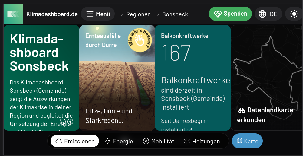 Erneuerbare Energien in Sonsbeck Eine Übersicht über den Status der erneuerbaren Energien in Sonsbeck Sonsbeck auf dem Klimadashboard mit Live-Daten…